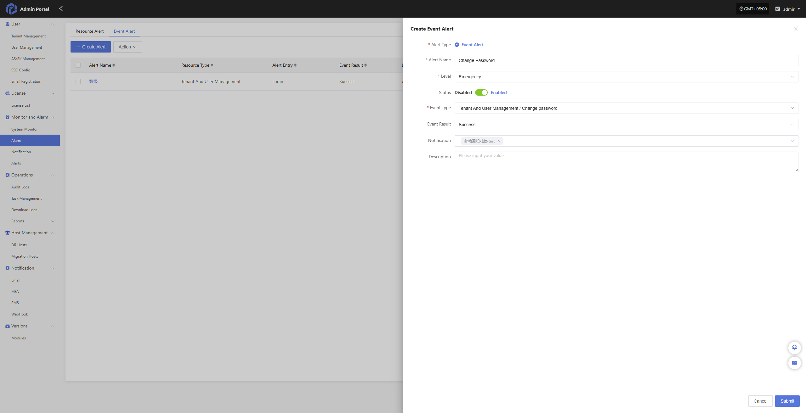 | Notification Language | Simplified Chinese | Controls the default language for system notifications (such as alerts and events) received by the user. |