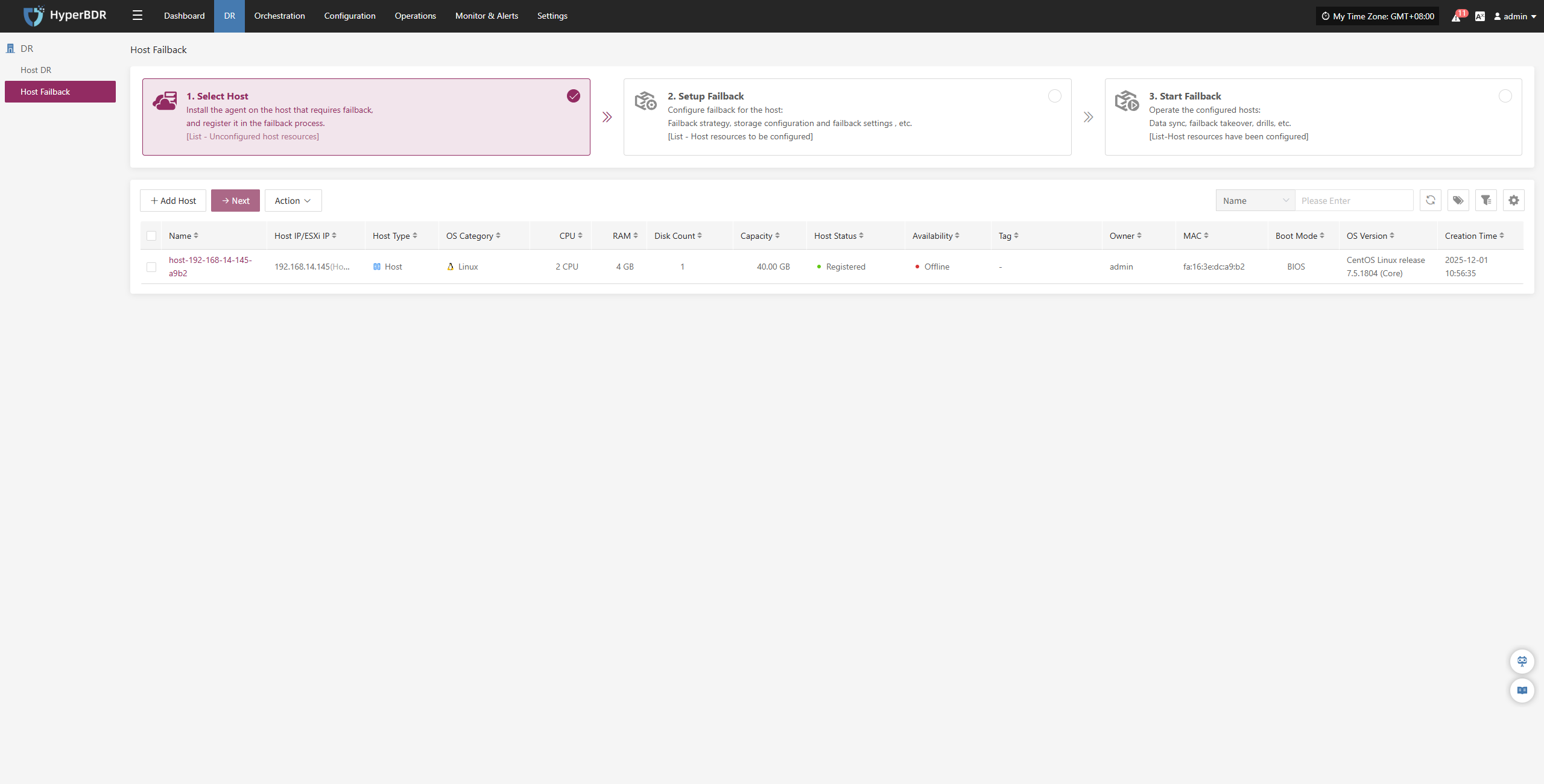 Click the Details button in the lower right to go to the "Start DR" page, where you can select hosts and perform immediate sync operations.
