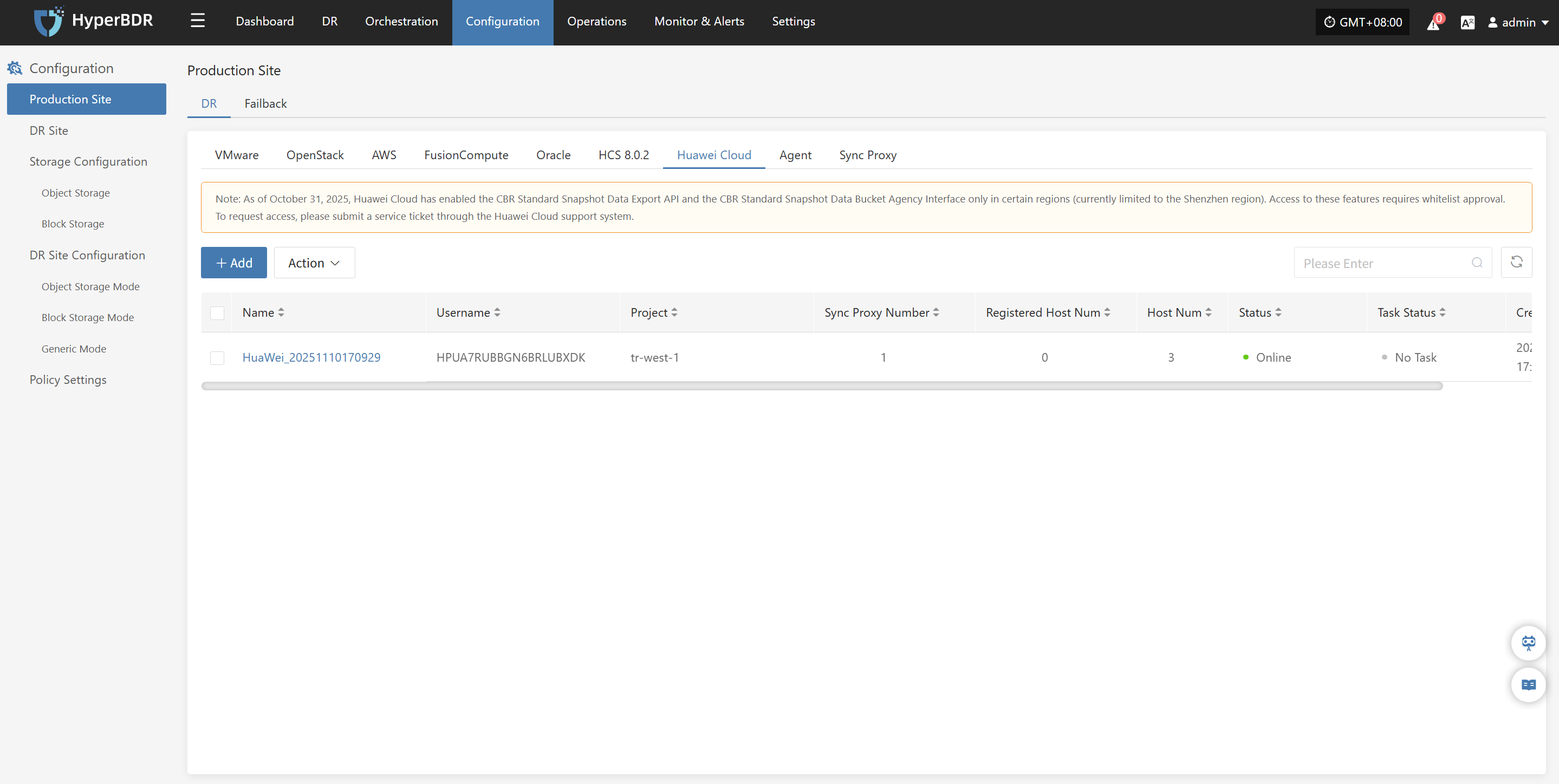 | Resource Type | The types of resources involved, including: · Object Storage · Disaster Recovery Policy User Resources · Disaster Recovery Host Resources · License Resources · Production Platform Resources · Disaster Recovery Platform Resources · Monitoring Alarms · Resource Groups |