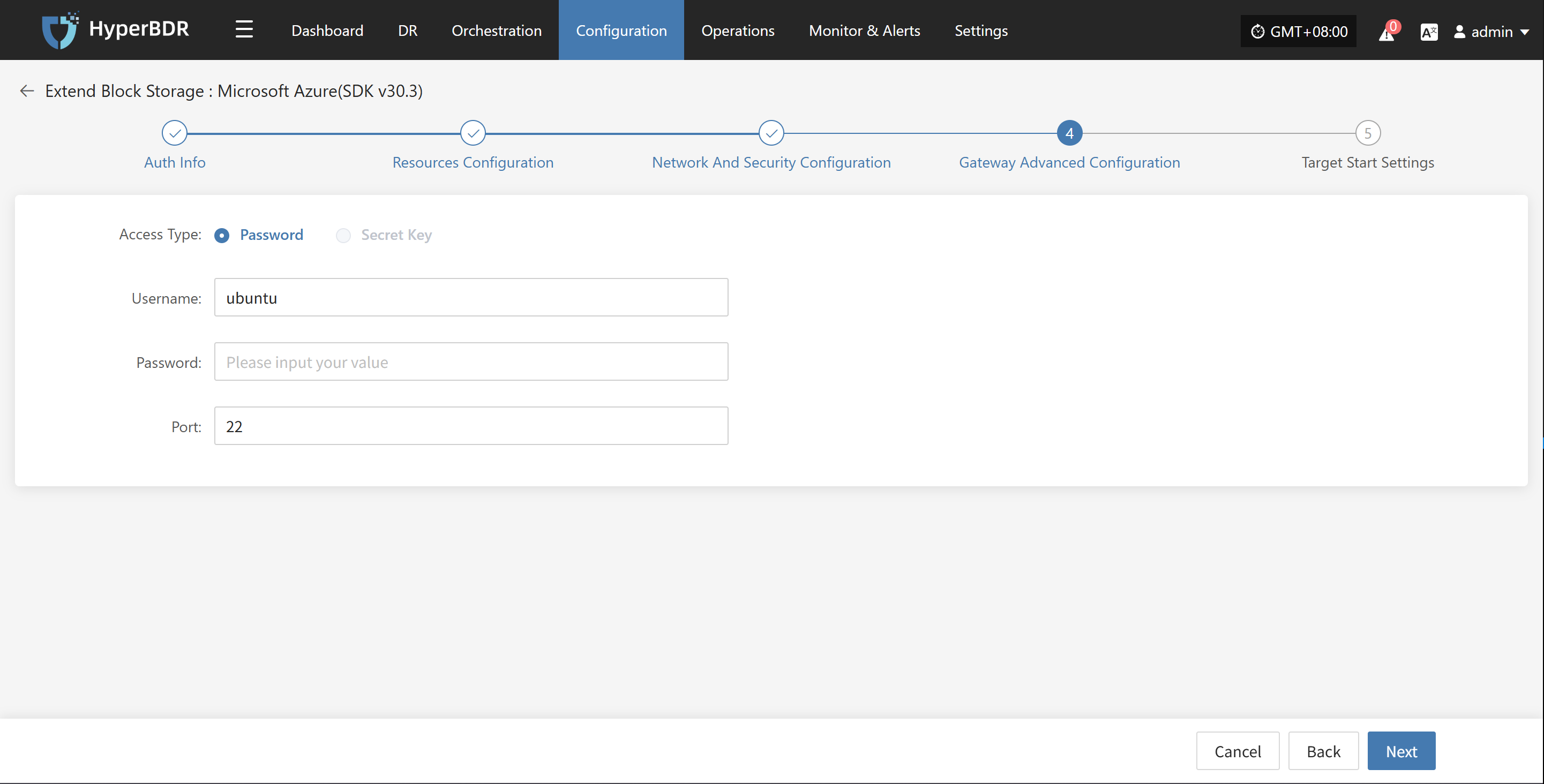 When creating a cloud sync gateway, in step 4 [Gateway Advanced Configuration], fill in ubuntu as username.