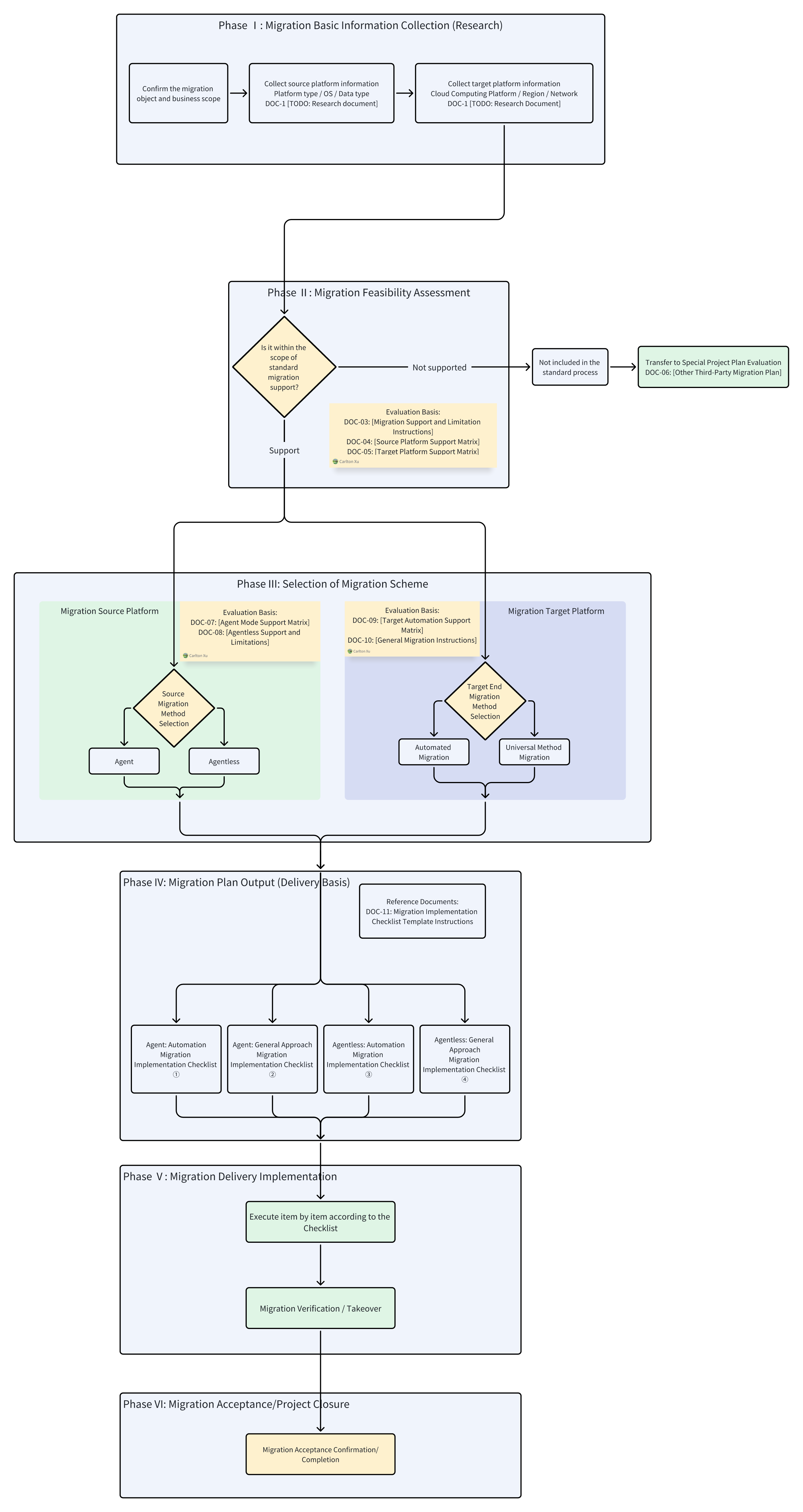 - For objects that do not support migration (such as databases, special applications, or non-standard systems), they are not included in the standard migration process, and other solutions or special project migration plans need to be evaluated according to the actual situation.