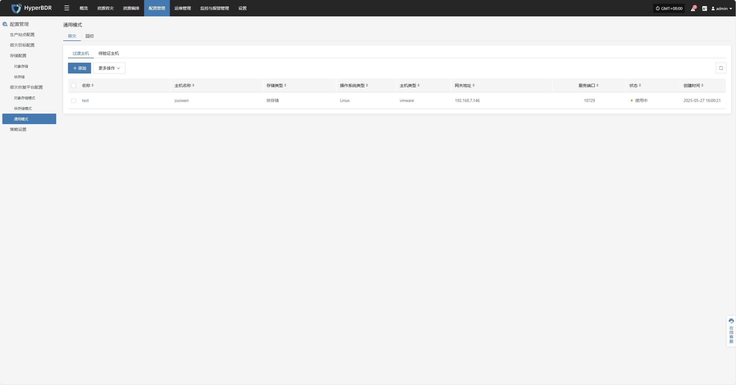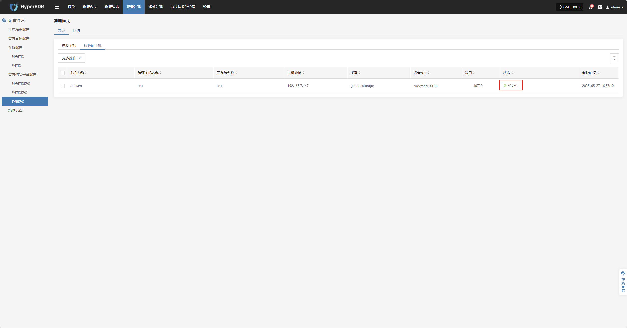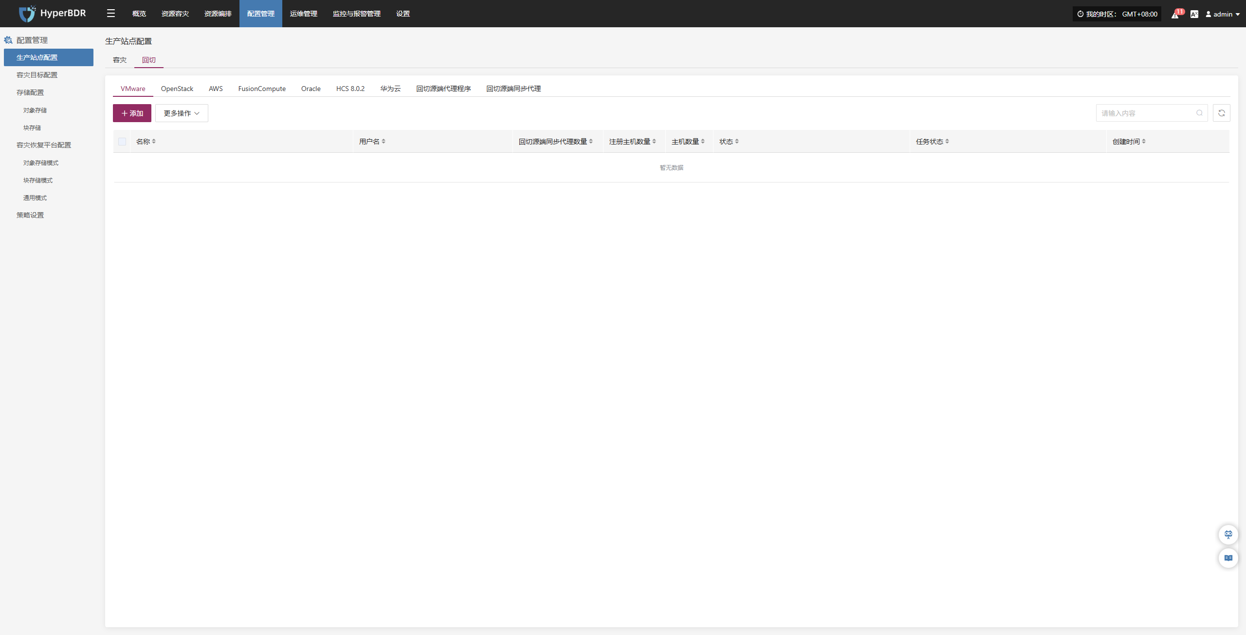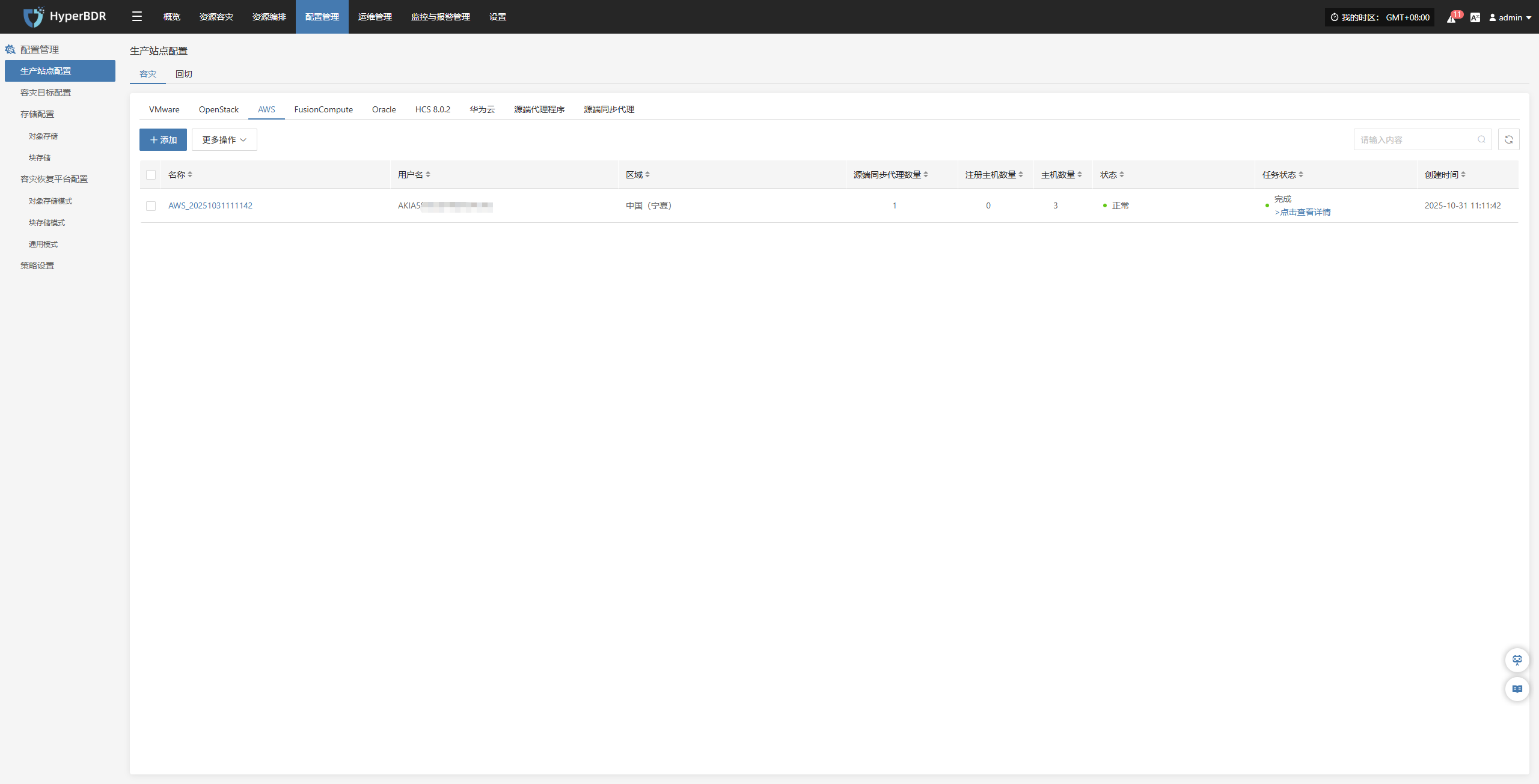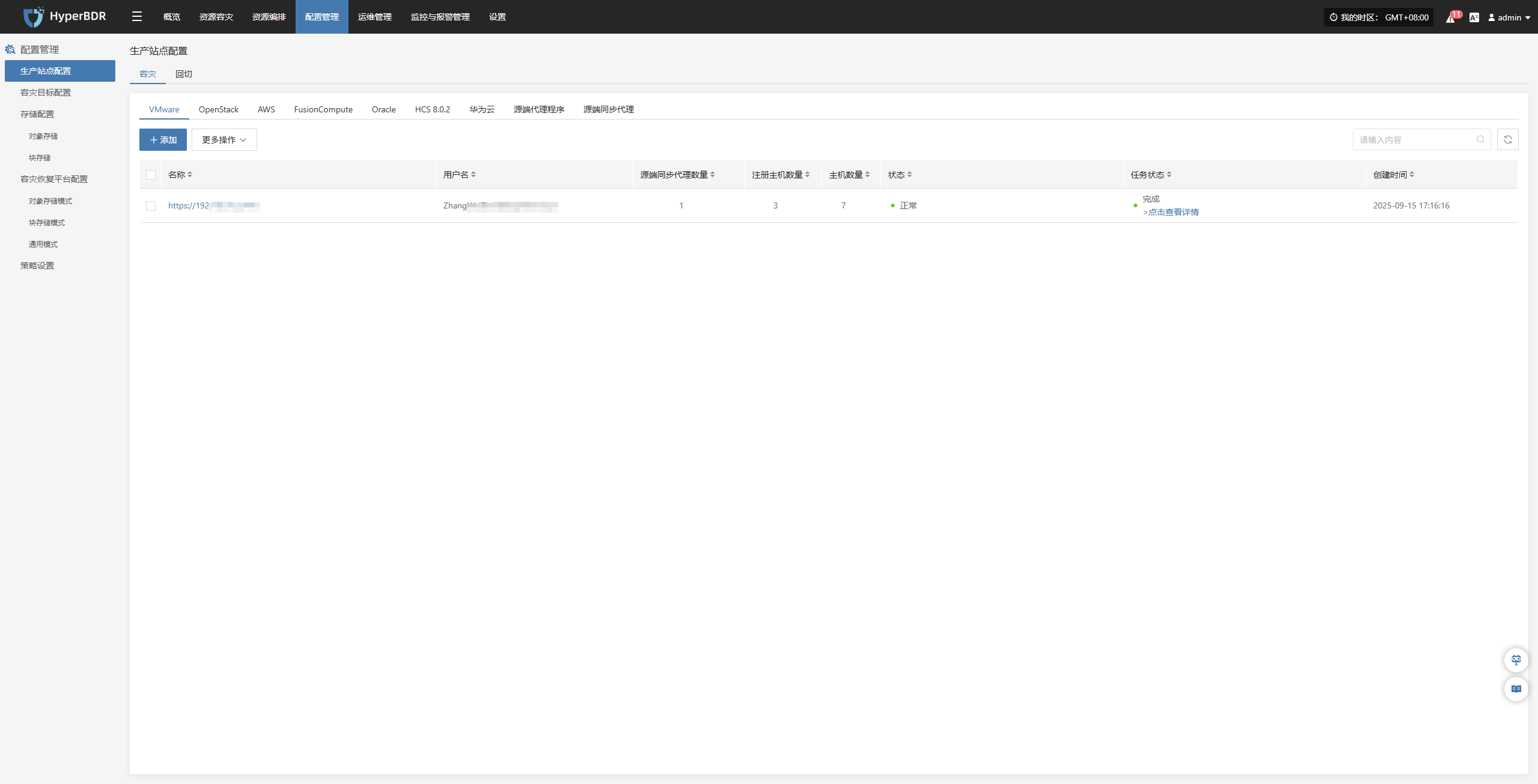 该模块展示当前系统已接入的所有容灾端平台的成功和失败数量,以及详细配置信息。