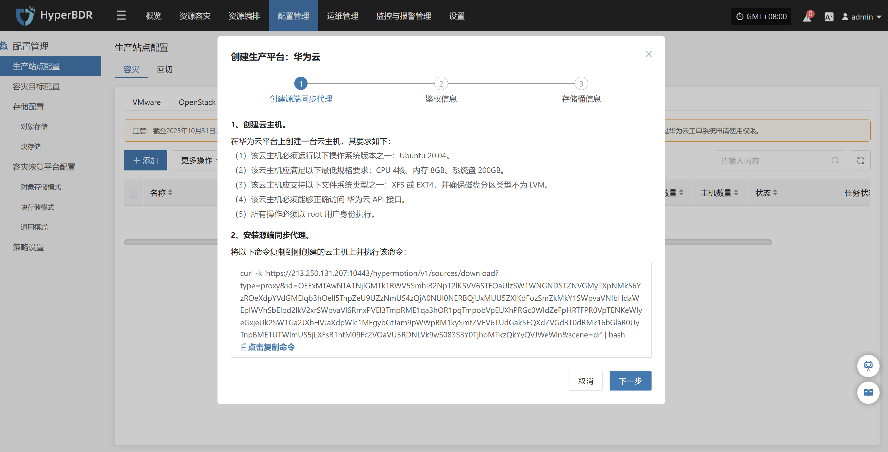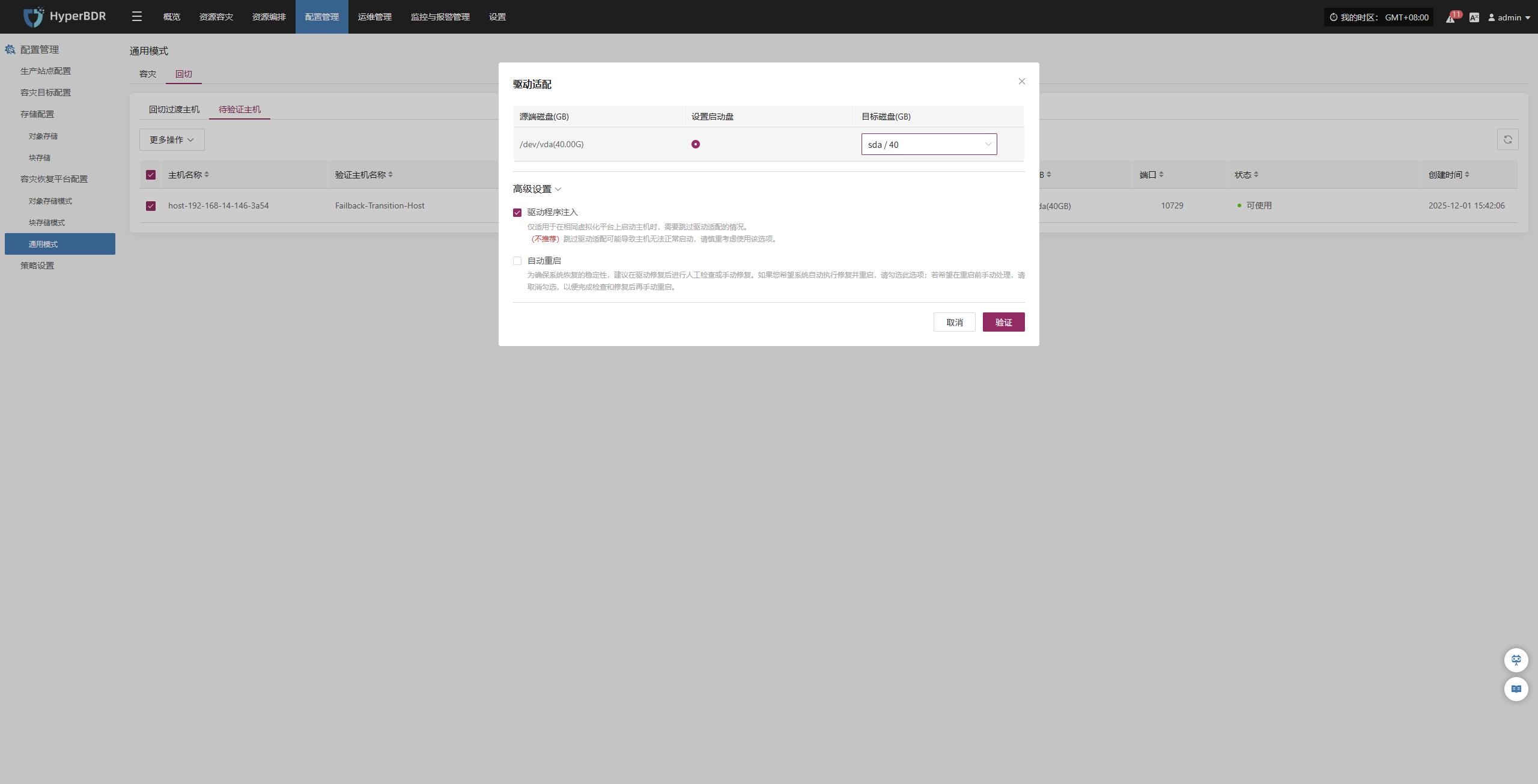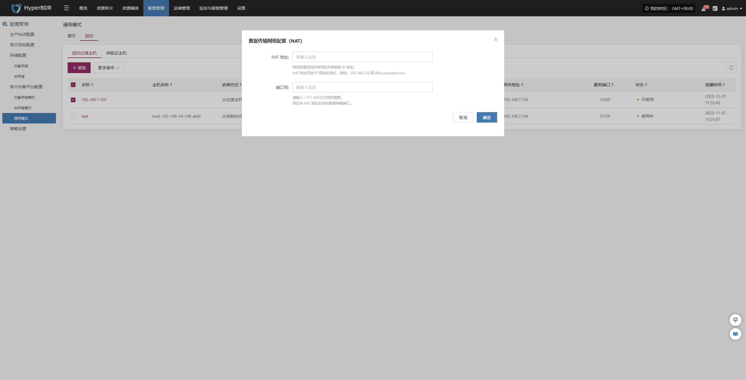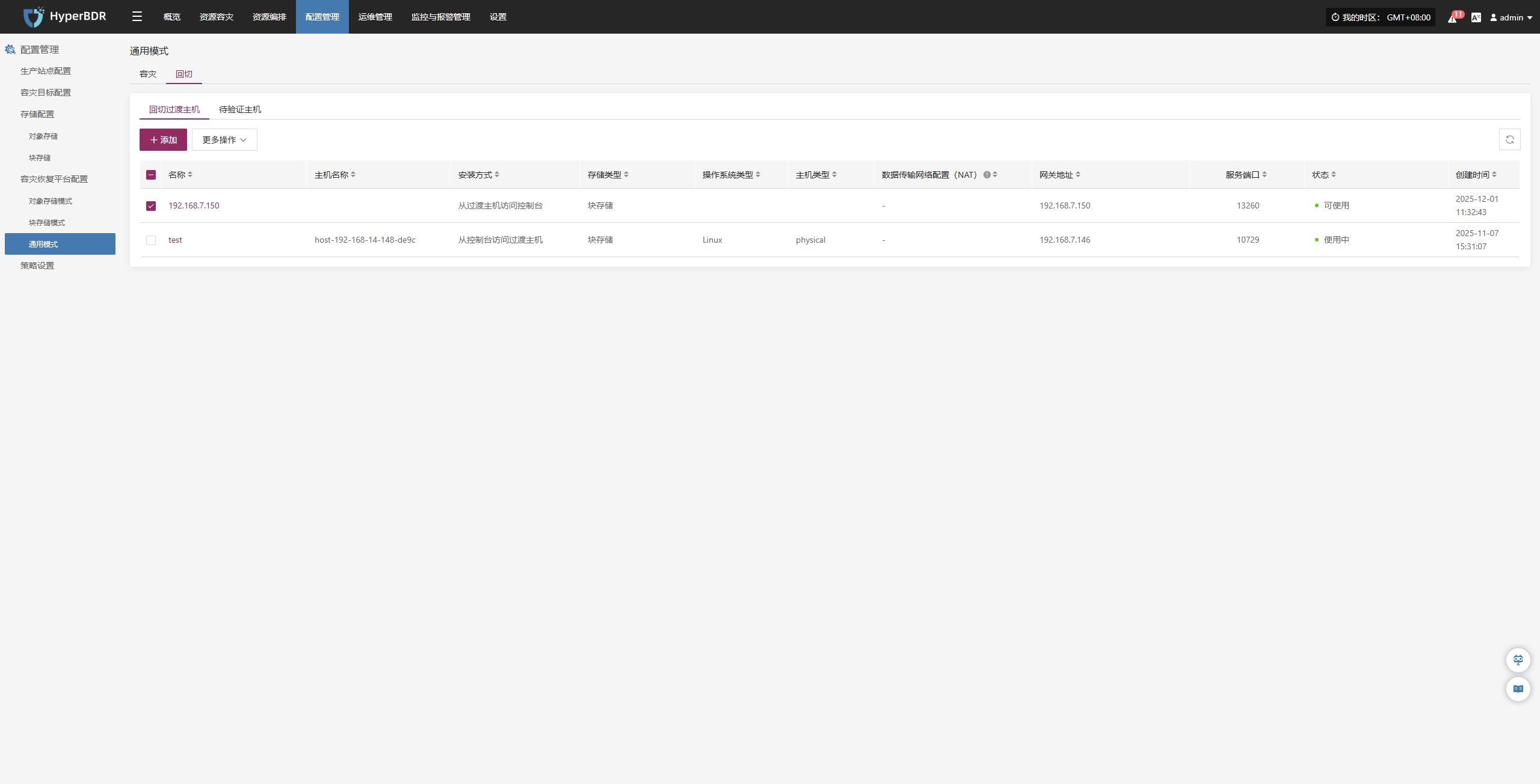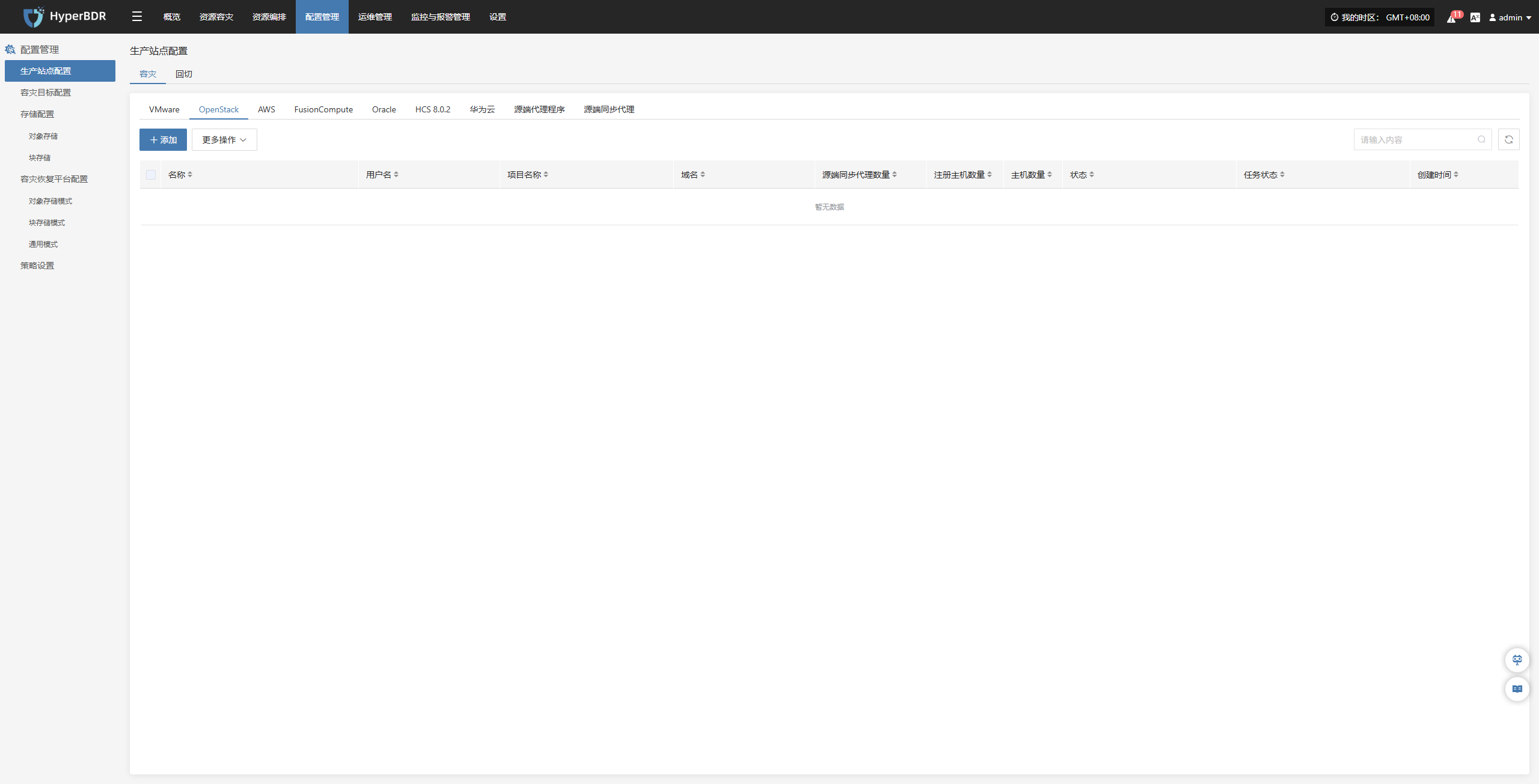 该模块展示当前系统已接入的所有容灾端平台的成功和失败数量,以及详细配置信息。