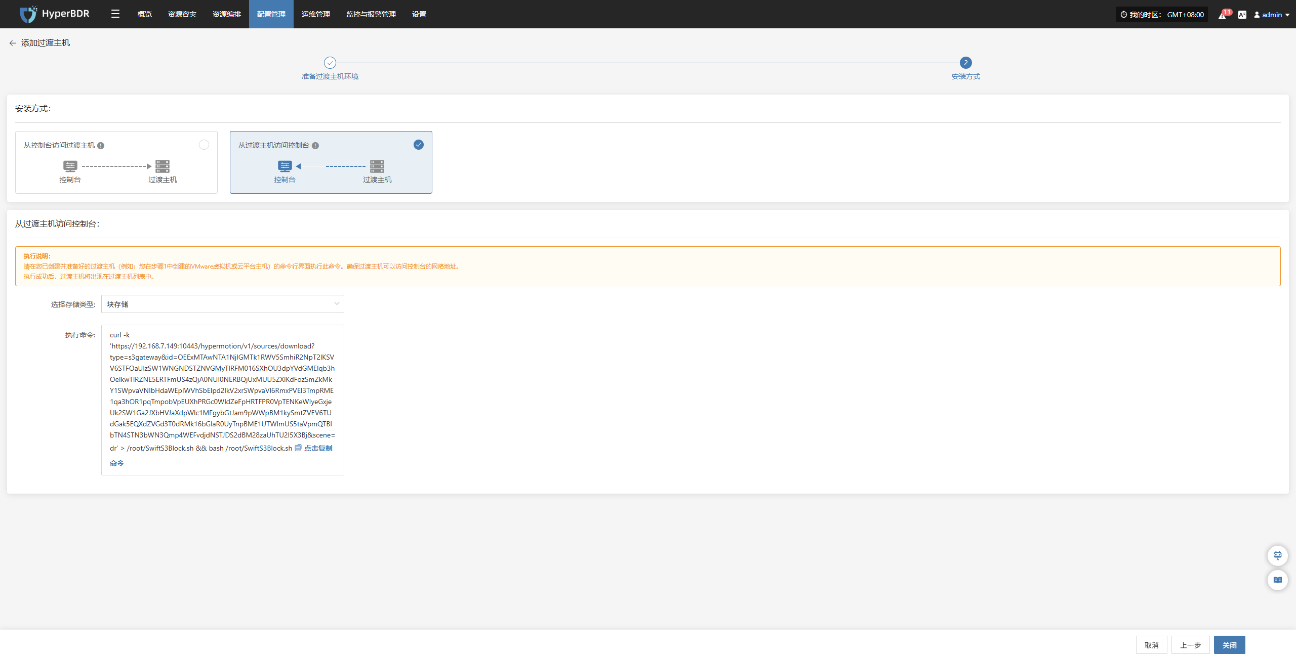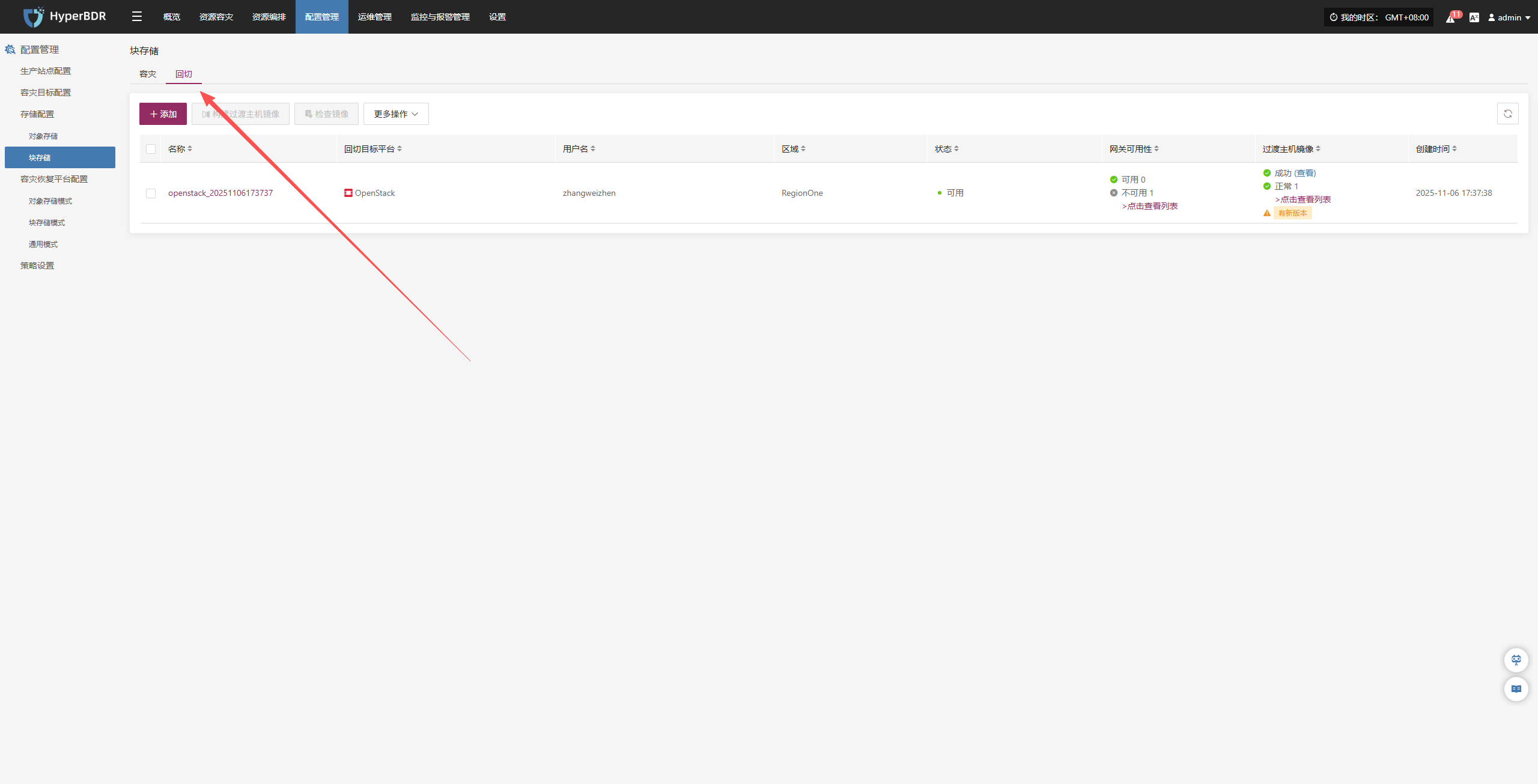 点击右下角“详情”按钮,可进入存储配置页面,进行块存储的配置和管理操作。
