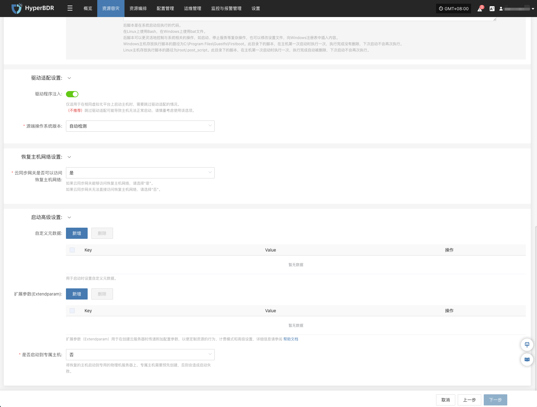 点击“详情”按钮可进入“开始容灾”界面,进行相关操作。