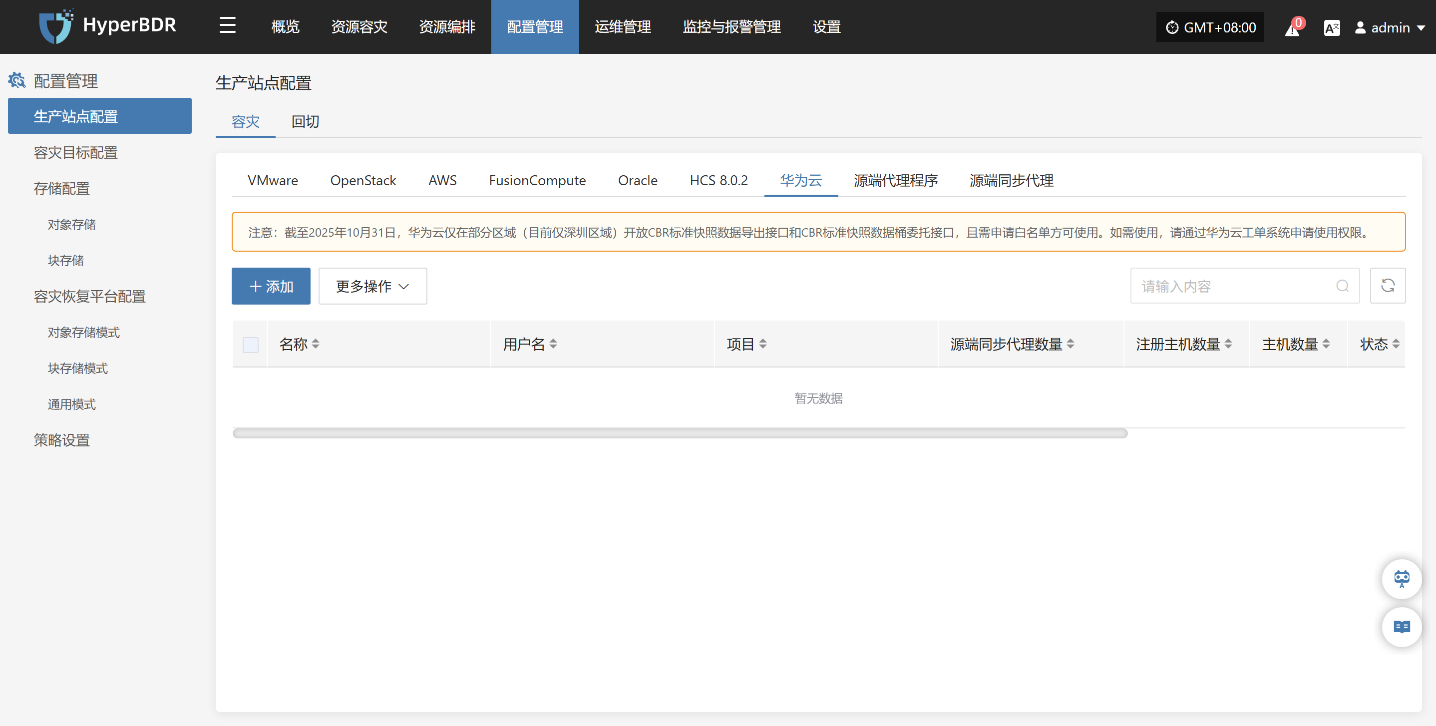 | 容灾平台资源 | 添加/删除/修改云平台、创建/删除云同步网关及过程事件 | 与容灾平台架构组件的创建、修改、部署状态等相关操作。 |