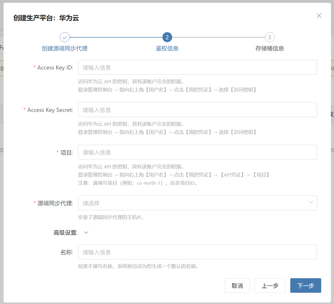 输入所需信息,包括:名称、姓氏、公司名称、国家/地区、邮箱等鉴权信息
