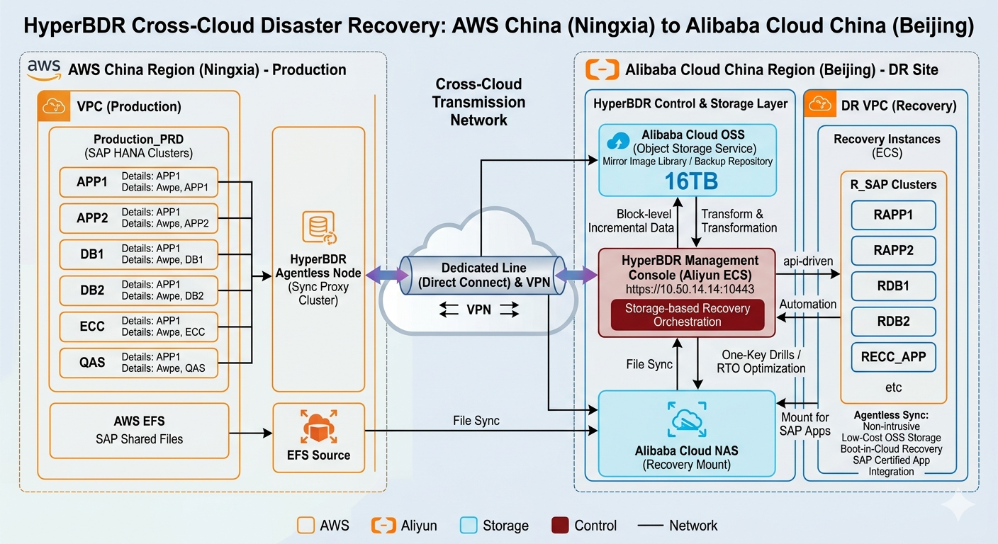 This project demonstrates HyperBDR's core value in SAP core business system cross-cloud disaster recovery scenarios: